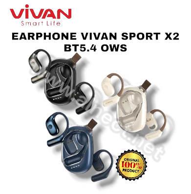 100% Original Vivan   Vivan Sport X2 OWS Open Ear ENC TWS Earphone Wireless Headset Bluetooth 5.4 Bass • Open-ear headphone /open-ear with a flexible fit • Powerful Audio for music : EXTRA BASS with 14.2mm Copper Ring Titanium Dome Speaker  • 30H playtimes with Battery Level Display • Dual ENC for High definition calls • IPX5 Waterproof?fit your style anytime anywhere for sport and play. • Fast Charging?10min=2H playtimes • Bluetooth Chip v5.4 • 45ms low Latency delay, Fast response for Gaming  • Hall switch, Auto connection device by open cover