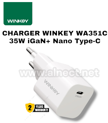 100% original dan bergaransi 24 bulan WINKEY Charger iGan+ Nano 35W PD PPS USB C - WA351C wajib jadi pilihan untuk teman beraktifitas - Extensive Compability Optimalkan pengisian daya semua perangkat dengan PPS 35W yang mendukung berbagai protocol charging, seperti PPS 35W Max, PD3.0, SFC1.0 and more - Advanced iGaN Technology Dengan material GaN (Gallium Nitrid) memberikan daya lebih besar dengan ukuran charger lebih kecil dibandingkan dengan charger dengan watt yang sama - Dynamic iFlash Technology Memberi daya maksimal pada perangkat yang lowbat hingga mencapai 20% dengan menjaga suhu perangkat tetap stabil - Over-Voltage Protection Dilengkapi dengan teknologi pengaman yang mencegah terjadinya tegangan berlebih saat proses pengisian daya