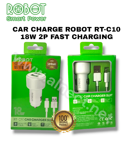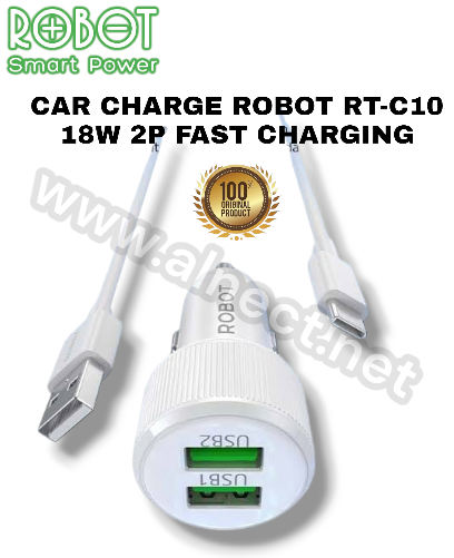 Spesifikasi : Brand : ROBOT Item Code : RT-C10 Color : White Safe and fast charging Battery Protection Dual port Output USB A With Kabel USB Type-C Model : RT-C10 Input : 12-24V Output USB 1 : DC 5V/3A,9V/2A,12V/1.5A Output USB 2 : DC 5V/2.1A   In The Box: 1 x ROBOT RT-C10 Car Charger 1 x Cable USB To Type-C 1 x Kartu Garansi