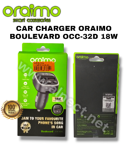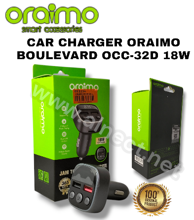 ORAIMO OCC-32D CAR CHARGER 18W spesifikasi -model: occ-32d - input : dc 12-24v -output 1 : 5v -output 2: 5v=3a 9v=2a 12v=1.5a -availablle distance : 5m