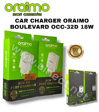 100% ORIGINAL ORAIMO Oraimo Charger Travel 20W Ultra Speed adalah Charger yang sudah di support oleh teknologi 1 Type-C Port to lightning dan Fast charging sehingga 3x lipat lebih cepat dan memberikan kecepetan pengisian battery kepada beberapa perangkat Anda (Handphone dan Laptop) sekaligus secara maksimal ? Kelebihan : •High speed charging - 3 x lebih cepet di bandingkan adaptor lainnya •Travel Size •Perlindungan ganda Mekanisme perlindungan internal menawarkan beberapa Perlindungan terhadap hubungan arus pendek, suhu berlebih, arus berlebih, tegangan berlebih, dan lainnya.