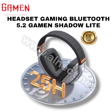 GAMEN SHADOW LITE Wireless Bluetooth Headphone ? GARANSI RESMI 1Th Keunggulan: 1. Unit Perangkat Suara 40mm, Kualitas suara jernih dan akurat 2. Bluetooth Chip 5.3, Low Latency 45ms dan konsumsi daya rendah 3. Kapasitas Baterai Besar 600mah, tahan hingga 25 jam (UP To) 4. Headband yang nyaman, bahan ringan, bermain jadi tahan lama 5. Mode Ganda Wired dan Wireless, Kompatibel dengan perangkat gaming interface 3,5mm (PC, Laptop, dsb) 6. Nyaman digunakan untuk waktu lama, ultra ringan Hanya 182gr 7. Microphone Dapat di tampilkan / Di sembunyikan