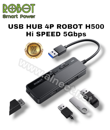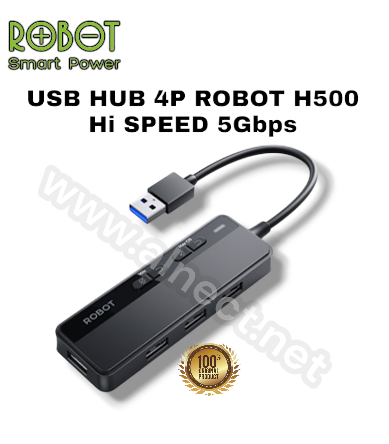 ROBOT USB Hub H500 USB 3.0 4 Ports Multifungsi Hub 5Gbps Garansi 1 Tahun   ?Keunggulan: 1. 4 port USB 3.0 5Gbps 2. Chip performa tinggi, transmisi yang stabil dan cepat 3. Plug and play, kompatibel dengan multi-sistem dan tidak memerlukan driver 4. Bahan ABS berkualitas tinggi, anti sidik jari, tahan gores, dan tahan lama