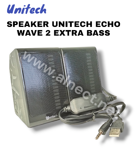 Merk Unitech Tipe Echo Wave series Bass mantap dan suara jernih Model simpel dan elegan Bisa dipakai untuk main game atau dengar musik Dilengkapi dengan lampu LED RGB Speaker menggunakan colokan Aux 3.5mm USB port untuk power speaker Bisa digunakan untuk semua device yang menggunakan colokan aux 3.5mm Plug and play Dilengkapi dengan tombol untuk pengaturan volume speaker Colokan usb berfungsi sebagai power untuk speaker