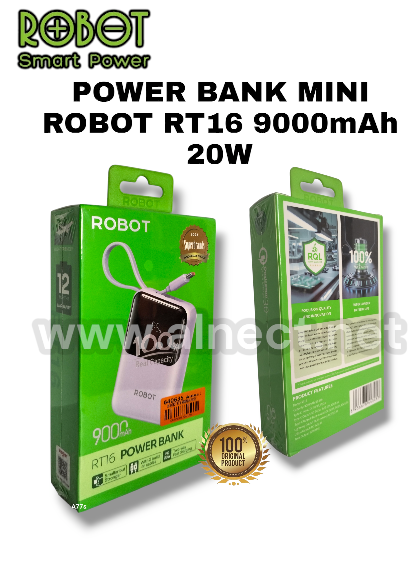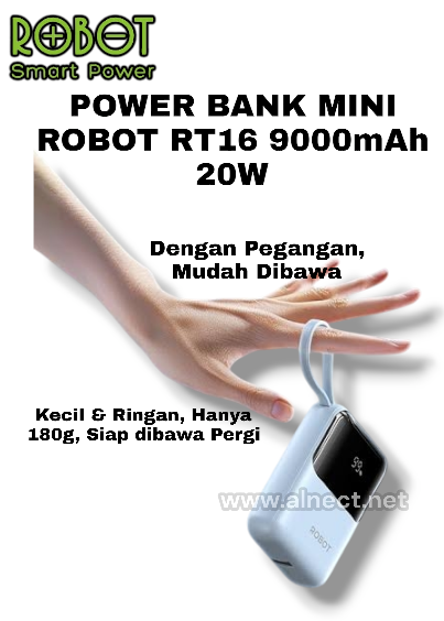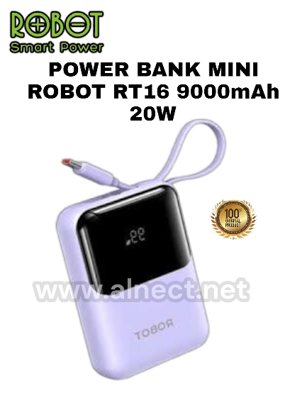 SPESIFIKASI Brand : ROBOT Item Code : RT16 Color : Blue / Purple Capacity : 9.000mAh / 33.3W Type-C in : 5V=3A / 9V=2A Type-C Out : 5V=3A ;9V=2.22A;12V=1.5A Type-C Out (Build In Wire) : 5V=3A ;9V=2A ;12V=1.5A Lightning Out (Build In Wire) :5V=2.4A USB-A Output : 5V=2.4A Total Output : 20W GARANSI 1 Tahun