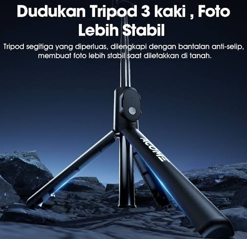 -Tripod segitiga yang diperluas, dilengkapi dengan bantalan anti-selip, membuat foto lebih stabil saat diletakkan di tanah