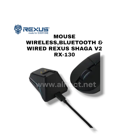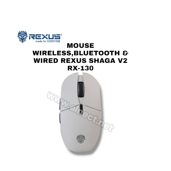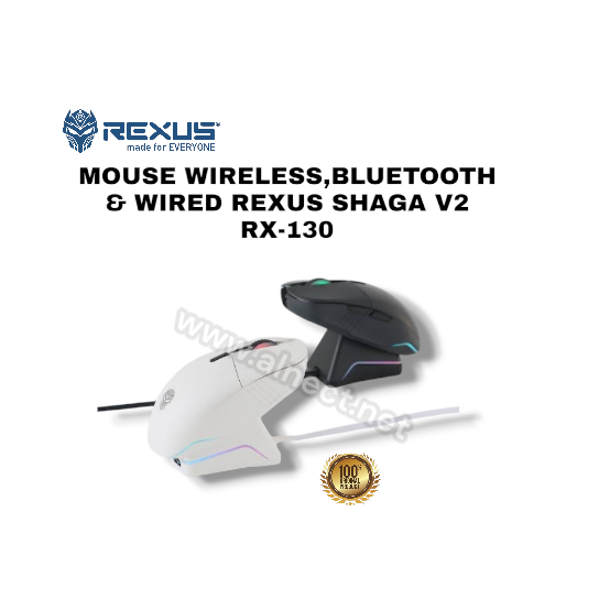 Mouse Gaming Wireless SHAGA RX-130 menawarkan tiga pilihan konektivitas, nirkabel 2.4G, bluetooth, dan kabel. Dongle USB untuk penggunaan mode nirkabel terdapat di penyimpanan bagian dalam belakang mouse sehingga mudah dibawa kemana-mana. Terdapat tombol di belakang mouse untuk mengganti konektivitas dengan mudah.