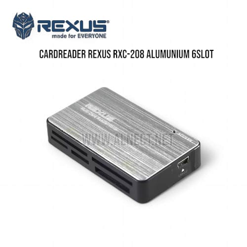 Rexus card reader RXC-208 dilengkapi material aluminium anti karat sehingga memberikan efek penggunaan jangka panjang dan tahan lama, selain itu fitur yang ditawarkan juga memberikan banyak keunggulan diantaranya mendukung kecepatan transfer data hingga 480Mbps dan mendukung memori kartu SDHC. Dengan system plug and play memudahkan Anda tetap terkoneksi tanpa harus menginstall-nya terlebih dahulu. Memiliki tampilan yang elegan dan kuat terbuat dari bahan aluminium yang berfungsi sebagai anti karat dan mempunyai efek penggunaan jangka panjang dan tahan lama. Card reader RXC-208 mendukung secara penuh USB versi 2.0 dan versi 1.1, cocok bagi Anda yang masih memiliki perangkat konektivitas versi lama sehingga tidak perlu menggantinya secara keseluruhan. 480MbpsMemiliki konektivitas yang cepat dan efisien merupakan salah satu keunggulan yang harus dimiliki oleh card reader Rexus RXC-208 untuk memenuhi kebutuhan pelanggan disetiap aktivitas.