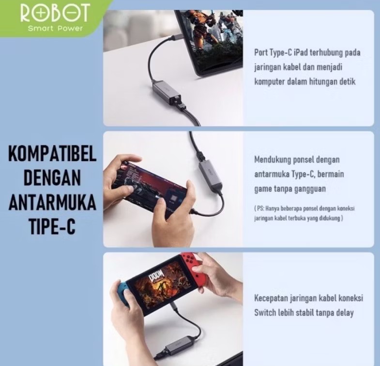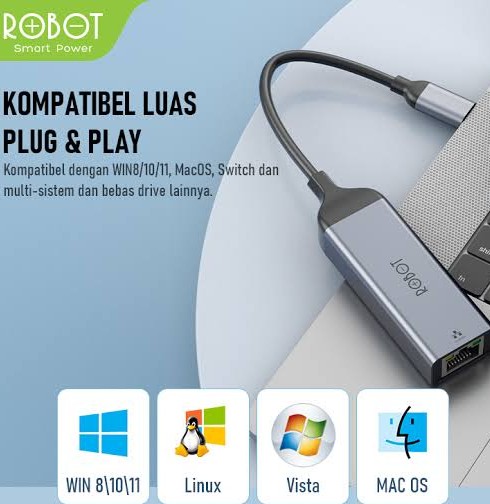 Keunggulan:EA20 USB C: 1. Jaringan internet cepat dan stabil -Beradaptasi dengan kecepatan jaringan 10/100/1000Mbps -Mengatasi wifi yang tidak stabil, atau -Tingkatkan jaringan computer dari 100M ke jaringan Gigabit agar cepat dan stabil 2. Kompatibel dengan antarmuka tipe-C (Ipad, mobile, switch dan perangkat lainnya) 3. Lampu LED indikator status 4. Kompatibel dengan WIN8/10/11, MacOS, Switch dan multi-sistem serta bebas drive lainnya