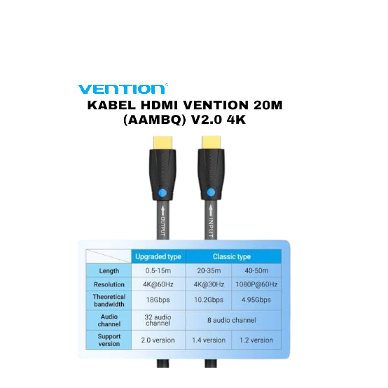 VENTION - HDMI Cable for Structure Cabling 20 Meter ---------- AAM ---------- FEATURES: Sync Audio & Video Ethernet & 3D Support High Speed 18Gbps Resolution Up To 4K@60hz, 1920x1080 (FHD@60Hz)