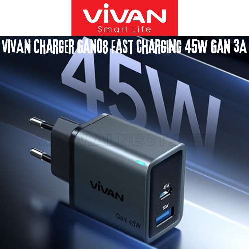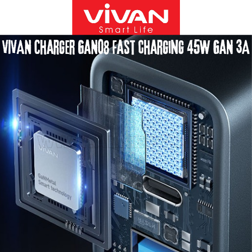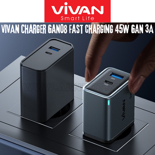 VIVAN Charger GaN08 Fast charging 45W GaN 3A 2 Output PD QC 5A Port Quick Charge Support Notebook - GARANSI RESMI 1 TAHUN