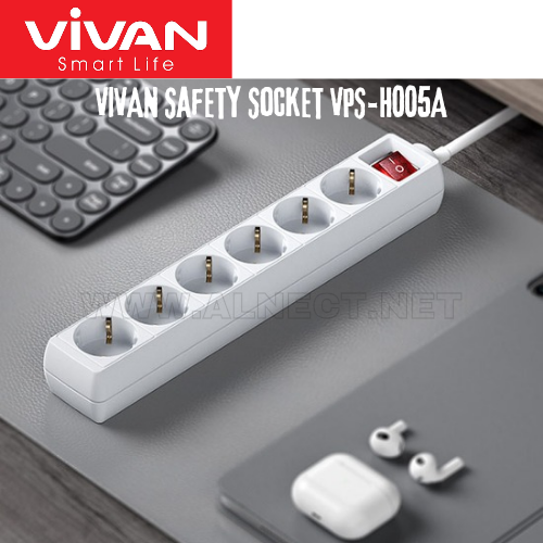 VIVAN Safety Socket VPS-H005A | Stop Kontak Saklar Socket 6 Slot Kabel Inti Tembaga Murni Plastik Tahan Api Child Lock 1,6M Garansi