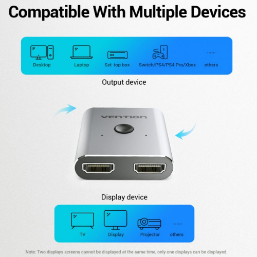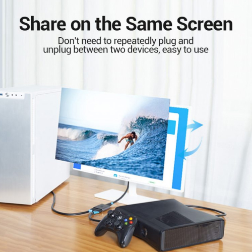 Vention HDMI Bi-Directional Switcher adalah alat serbaguna yang dapat digunakan dalam dua mode: 2 input ke 1 output (memilih antara dua sumber HDMI ke satu layar) atau 1 input ke 2 output (berbagi satu sumber ke dua layar secara bergantian, bukan simultan). Mendukung resolusi hingga 4K, memberikan pengalaman visual yang tajam dan jernih. Didesain dengan material paduan logam untuk ketahanan lebih baik serta fitur plug & play tanpa memerlukan daya tambahan.