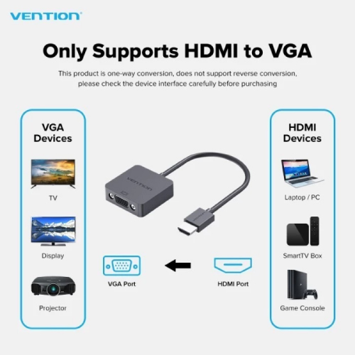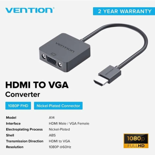 Vention Converter HDMI to VGA 15cm A14HB adalah konverter berkualitas tinggi yang memungkinkan koneksi perangkat HDMI ke layar atau proyektor dengan input VGA. Dilengkapi dengan chip konversi berkinerja tinggi untuk menghasilkan gambar yang jernih tanpa lag. Cocok untuk menghubungkan laptop, PC, konsol game, atau perangkat lain dengan port HDMI ke monitor atau proyektor VGA.