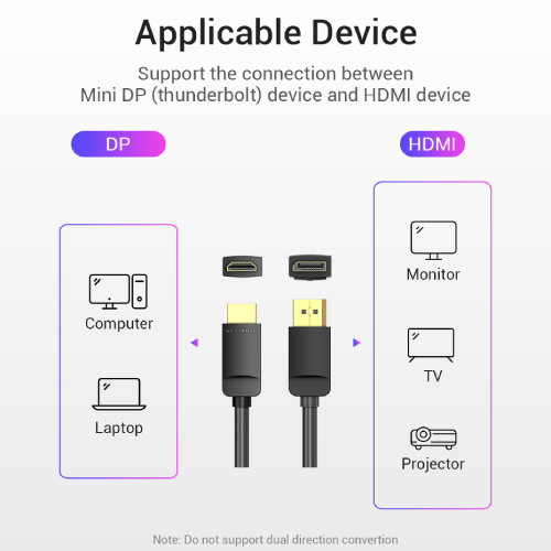 Vention HAD Kabel DisplayPort (DP) Male to HDMI Male adalah solusi praktis untuk menghubungkan perangkat dengan output DisplayPort ke layar dengan input HDMI. Kabel ini mendukung resolusi tinggi hingga 1080p dan 4K UHD, memberikan tampilan gambar yang jernih dan tajam. Ideal untuk penggunaan pada PC, laptop, monitor, TV, dan proyektor.