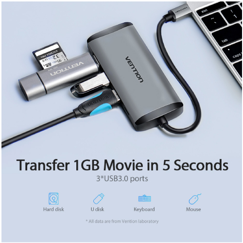 Vention USB 3.0 Hub Multiport adalah adaptor serbaguna yang mengubah satu port USB-A menjadi beberapa port USB 3.0 serta menambahkan koneksi RJ45 LAN Ethernet. Cocok untuk laptop dan PC yang tidak memiliki port LAN atau membutuhkan lebih banyak port USB dengan kecepatan tinggi.