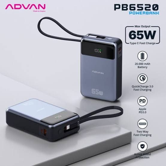 Dengan powerbank Advan memberikan solusi praktis untuk mengisi daya perangkat elektronik Anda dimanapun dan kapanpun. Dengan variasi pilihan port charging membantu pengguna dalam keadaan darurat tanpa khawatir akses stop kontak terbatas.