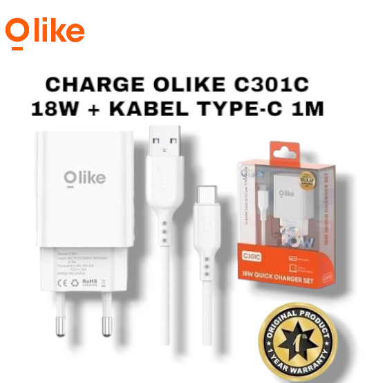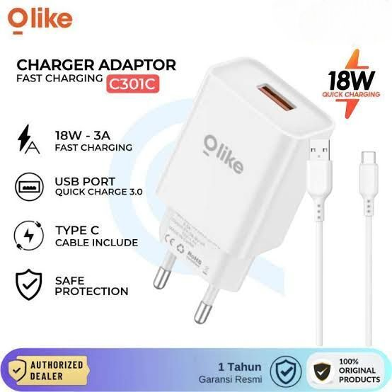 Olike C301 Adapter Charger With Kabel Quick Charger 18W 100% Baru dan Original Olike !