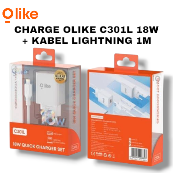 100% ORIGINAL OLIKE   Model : C301L Color : White Input : 110-240V~50/60hz 0.5A Output : 5V=3A,9V=2A,12V=1.5A Power : 18W Wiring Interface : Lightning Data Cable