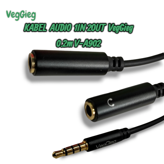 Dengan kabel audio splitter VeggieG 3.5mm male to 2 female 3.5 mic headset A902 A-902, Anda dapat dengan mudah membagi audio dari satu perangkat ke dua perangkat dengan colokan headphone berukuran 3.5mm.   Kabel splitter audio dilengkapi dengan colokan headphone berukuran standar: cocok untuk sebagian besar perangkat yang mendukung jack headphone Kualitas suara yang optimal: nikmati suara jernih dan tajam tanpa kebisingan atau gangguan lainnya Panjang kabel ideal sepanjang 20cm sehingga mudah digunakan dan disimpan di mana saja.   Dengan desain yang simpel dan praktis, cable audio splitter VeggieG merupakan aksesori wajib bagi penggemar musik atau pengguna gadget lainnya. Dapatkan pengalaman mendengarkan musik terbaik dari satu perangkat ke dua perangkat secara bersama-sama tanpa kesulitan.