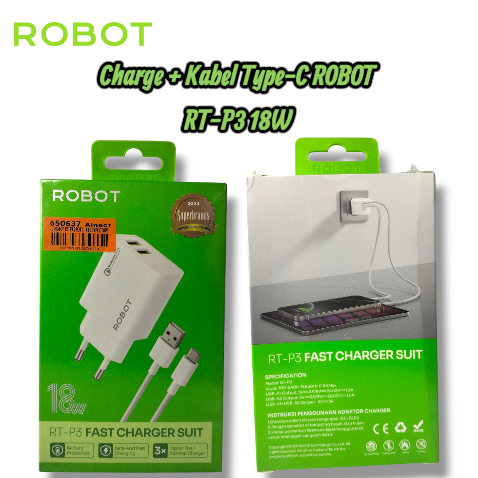 Beli Charger Dual USB Port A+A ROBOT RT-P3 Fast Charging 18W QC3.0 with Type-C termurah di Indonesia! Belanja online di alnect.net sekarang dan temukan diskon Charger Dual USB Port A+A ROBOT RT-P3 Fast Charging 18W QC3.0 with Type-C lainnya untuk mendapatkan harga terbaik. Nikmati promo dan tawaran ekslusif untuk produk Jual Charger Dual USB Port A+A ROBOT RT-P3 Fast Charging 18W QC3.0 with Type-C - Charger Combo Kit - Alnect Komputer Webstore Travel Charge ROBOT RT-P3 ,Adapter Charge ROBOT RT-P3 ,TC ROBOT RT-P3 disertai dengan Layanan Customer service terbaik dan berbagai pilihan jenis pengiriman dan pembayaran termudah.