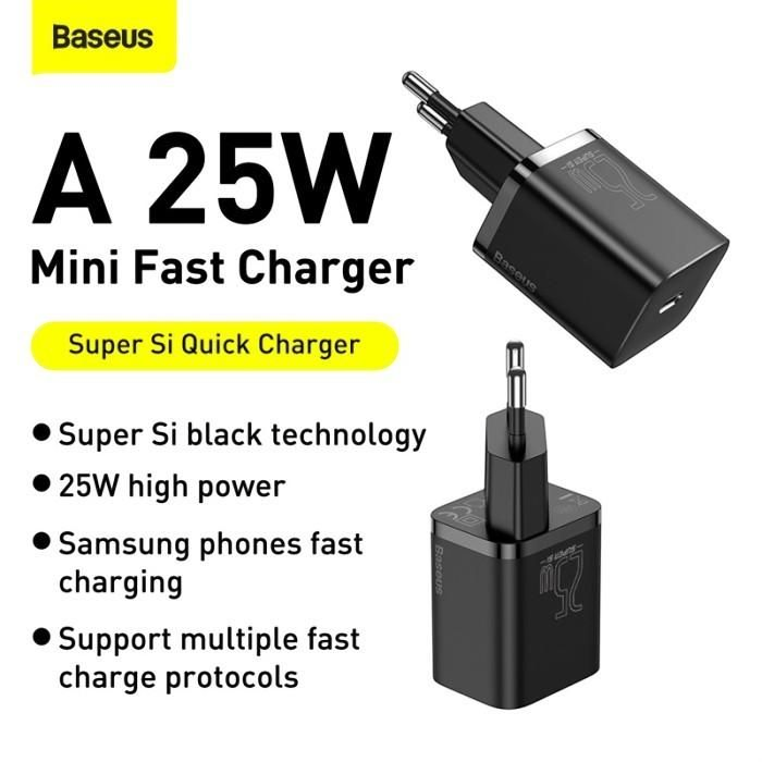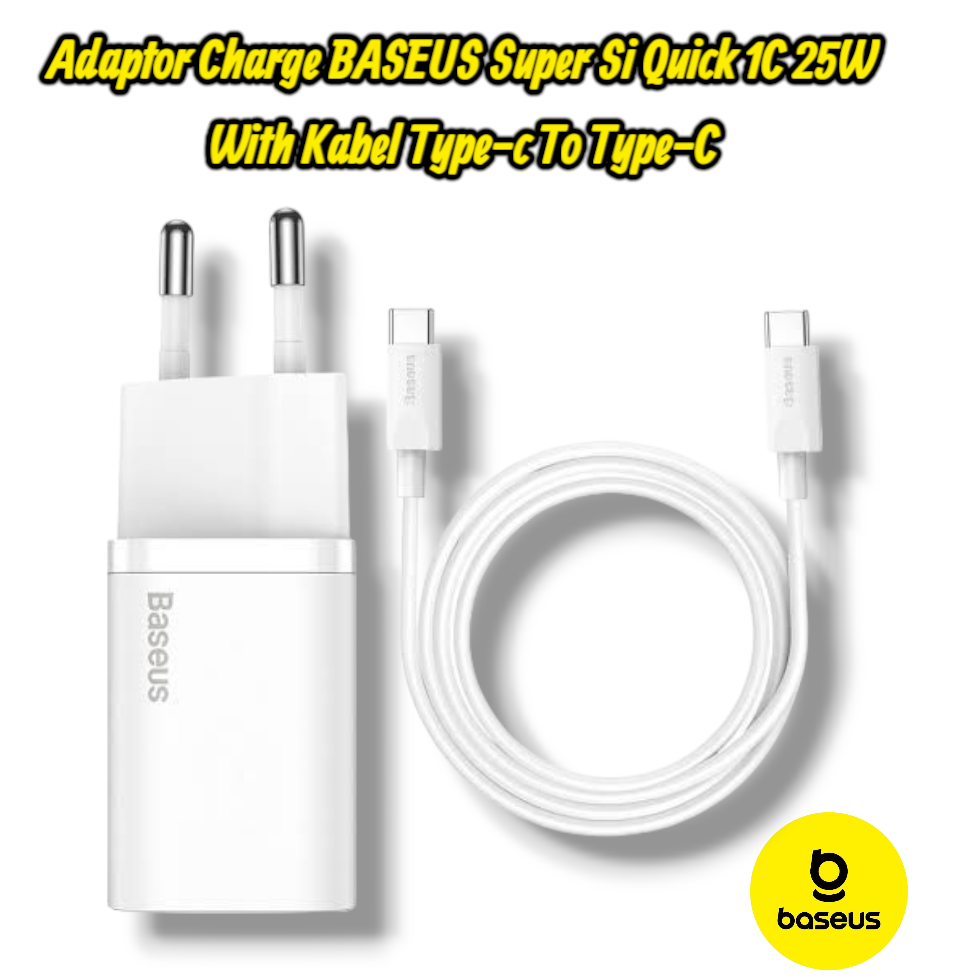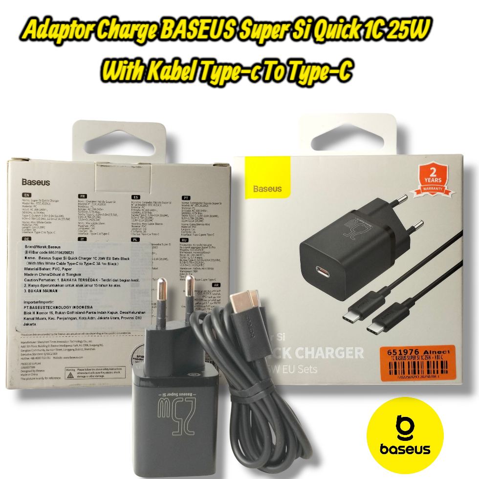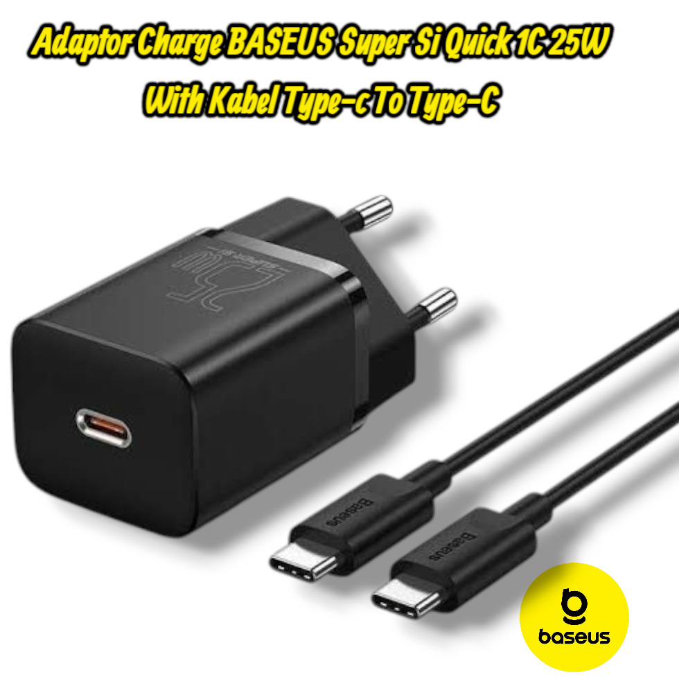 BASEUS Super Si Quick Charger 1C 25W with Cable Type-C to C 1m 100% ORIGINAL DAN BARU Pengisian Cepat 25W Teknologi Super Si Mendukung Beberapa Protokol Pengisian Cepat Beberapa Perlindungan Keamanan Kecil dan Portabel