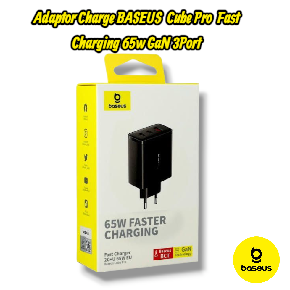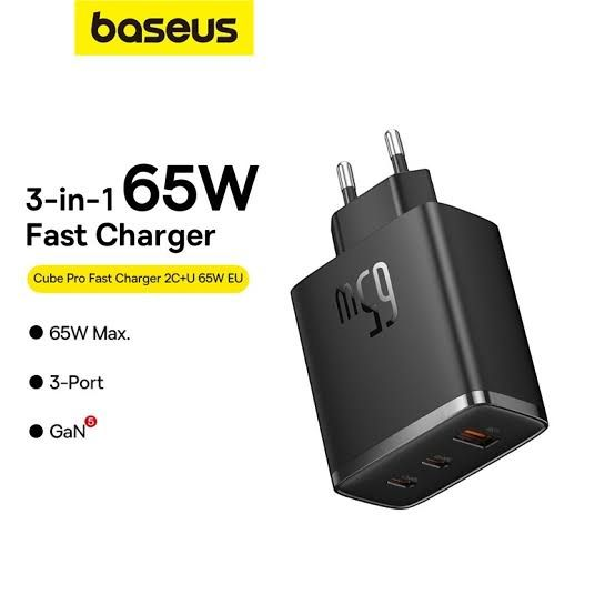 Baseus Kepala Charger Cube Pro Fast Charger 65W 3 Port