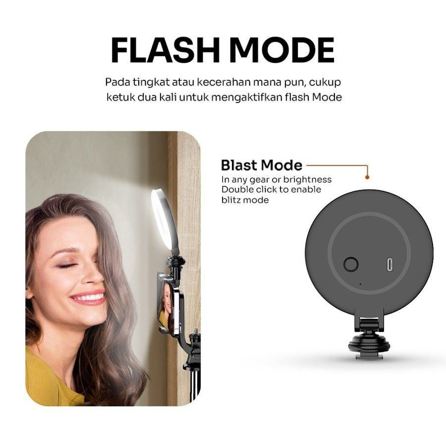 Robot RFL02 Beauty Fill Light Black With Three Mode and Brightness Lampu Selfie Keunggulan : Genggam & Gantung 3 Tingkat Kecerahan Dua port pengisian Kompatibel dengan banyak port Gimbal yang dapat berputar, Penerangan 3D