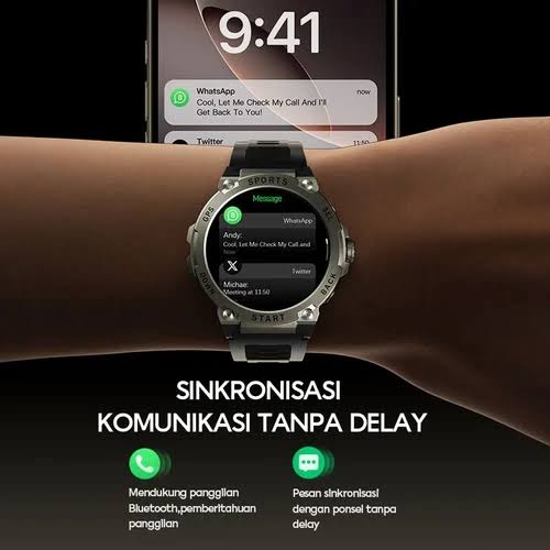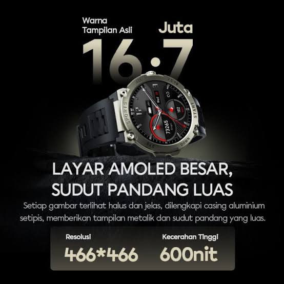 Keunggulan AMOLED Display tampilan Layar Jernih AMOLED dengan Visual 1.43inch Display dan 600Nits Kecerahan Built in GPS Chip GPS bawaan pada Smartwatch memudahkan saat penggunan sport mode dengan akurasi rekam jejak Secara detail 100+ Sport mode Zinc Alloy paduan Body dengan Zinc alloy material Smart Call mendukung Panggilan Bluetooth dan Notifikasi Pesan SpO2,Heart Rate,sleep monitor, women health PACK : 1X WATCH + STRAP 1X CABLE CHARGING