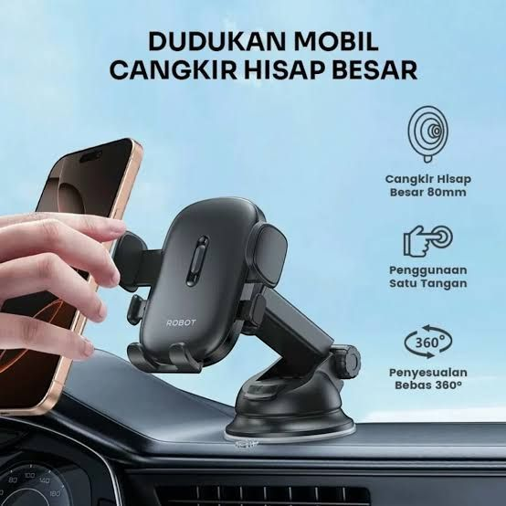 ROBOT Universal Car Holder Dashboard Rotatable 360 Derajat Cup Stand Holder 80mm Mobile Phone Holder Mobil RT-CH03S Original - Garansi 1 Tahun Keunggulan : 1. Car holder dengan desain dudukan mobil cup besar 80mm 2. Operasi mudah, hanya dengan satu tangan 3. Dapat rotasi 360 derajat menyesuaikan kebutuhan 4. Tidak menghalangi pandangan pengemudi