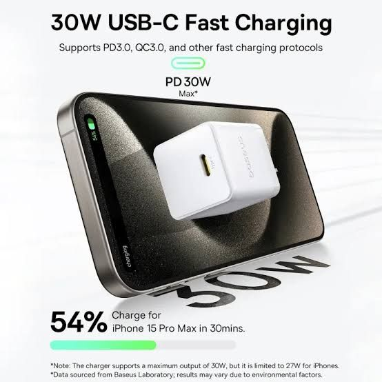 Daya 30W: Mendukung pengisian cepat hingga 30W, mampu mengisi baterai perangkat Anda lebih cepat daripada charger konvensional.