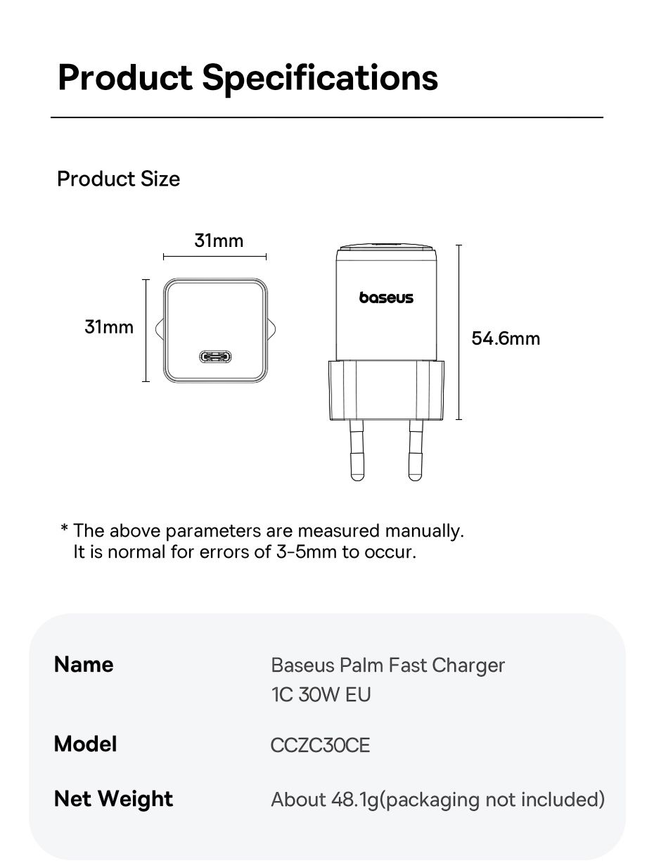 Name: Baseus Palm Fast Charger 1C 30W EU