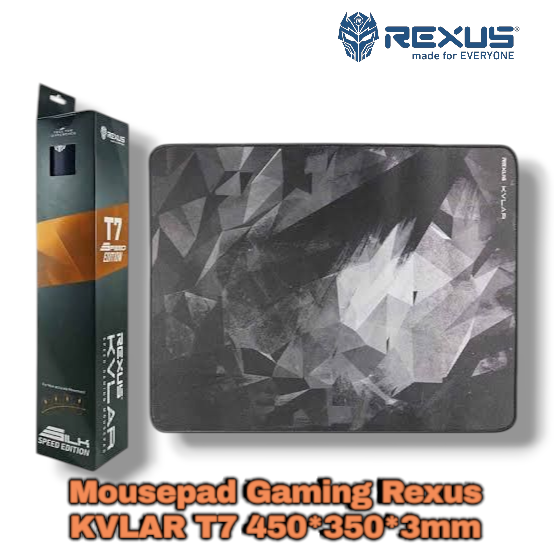 Mousepad Rexus KVLAR T7 diproduksi dengan teknologi mutakhir ini akan mengakomodasi setiap pergerakan mouse secara halus dan lancar sehingga mendongkrak performa dan kenyamanan. Mousepad ini mempunyai permukaan yang halus dan licin sehingga sangat tepat untuk permainan berkarakter “speed” yang membutuhkan pergerakan mouse secara cepat namun tetap presisi