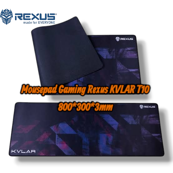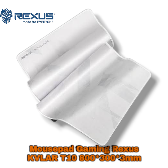 Mousepad Rexus KVLAR T10 mempunyai permukaan yang halus dan licin, dengan kain berkontur yang terbukti membantu sensor mouse memetakan titik secara detil. Untuk mendukung permainan cepat, Mousepad Rexus KVLAR T10 hadir dalam ukuran yang lebar sehingga pergerakan mouse akan lebih bebas. Satu keunggulan lain yang membuat Mousepad Rexus KVLAR T10 makin pantas untuk Anda gunakan di arena kecepatan adalah mouse ini menggunakan material anti-air. Jika kecepatan pergerakan mouse jadi tak terkontrol sehingga tanpa kuatir Anda menumpahkan air minum di atasnya, mousepad ini tetap bisa langsung Anda gunakan kembali.