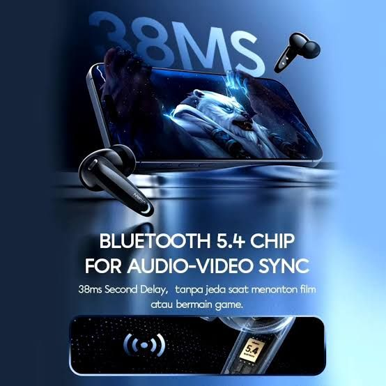 Keunggulan 1. Suara jernih dengan efek bass maksimal. Dilengkapi fitur Adaptive ANC untuk meredam kebisingan, saat melakukan panggilan Telepon di keramaian. 2. Playtime hingga 42 Jam (7 Jam daya tahan baterai earbud + 35 Jam daya charging case) untuk nikmati musik dan konten digital lain dalam durasi yang lebih lama. 3. Latensi sangat rendah 38ms, minim delay untuk sinkronisasi audio dan video yang lebih presisi. 4. Bluetooth 5.4 membuat koneksi lebih stabil, pairing lebih mudah dan konsumsi daya yang rendah. 5. Tahan air dan keringat dengan standar waterproof IPX5. 6. Hadir dengan material berkualitas dan desain earbud in-ear. 7. Pengisian daya menggunakan port Type-C 8. Tampilan Daya LED 9. DUAL EQ (Normal Mode & Extra Bass Mode)