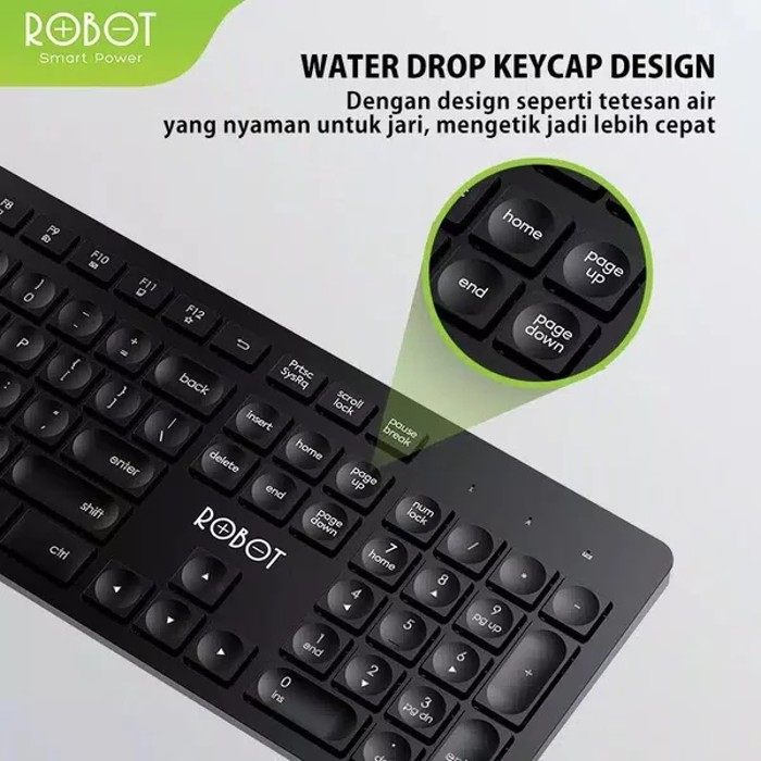 ROBOT KM4000 Wireless Keyboard And Mouse Combo Silent Key  -  BLACK