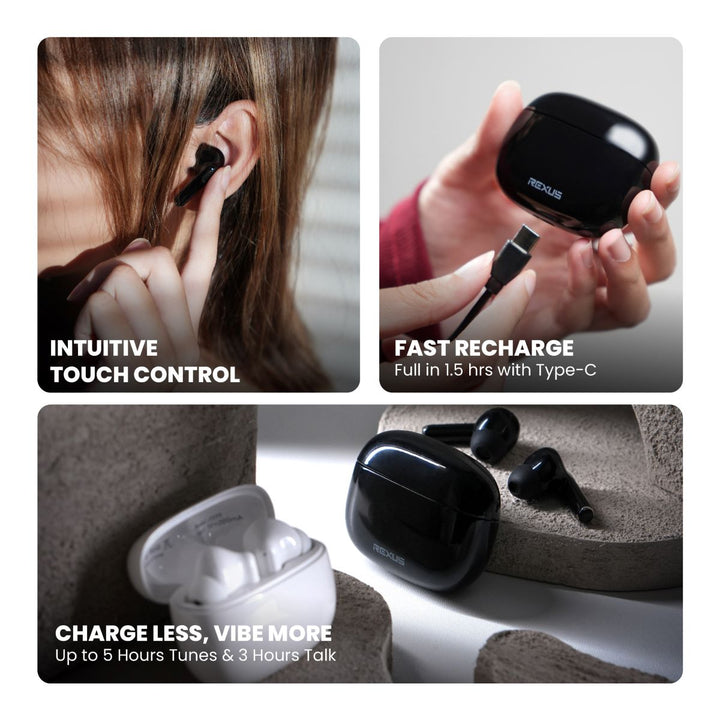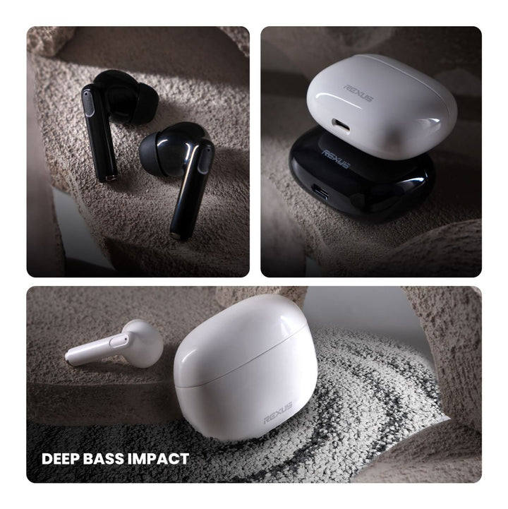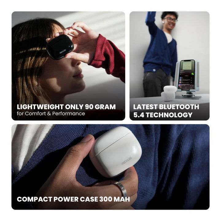 SPESIFIKASI Versi Bluetooth: 5.4 Format audio yang didukung: AAC, SBC Rentang Respon Frekuensi: 20Hz - 20KHz Baterai headset: 30 mAh Baterai case pengisi daya: 300 mAh Waktu pengisian daya: ±1.5 jam Waktu pemutaran musik: ±5 jam Waktu bicara: ±3 jam Port Pengisian Daya: Type-C