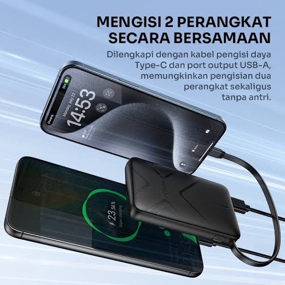 Spesifikasi : * Model : RT07 * Capacity : 5.000mAh Power:18.5Wh * Type-C Input : 5V/2A * USB Output : 5V/2A * Type-c Cable Output : 5V/ 2A * Total Output : 5V/2A