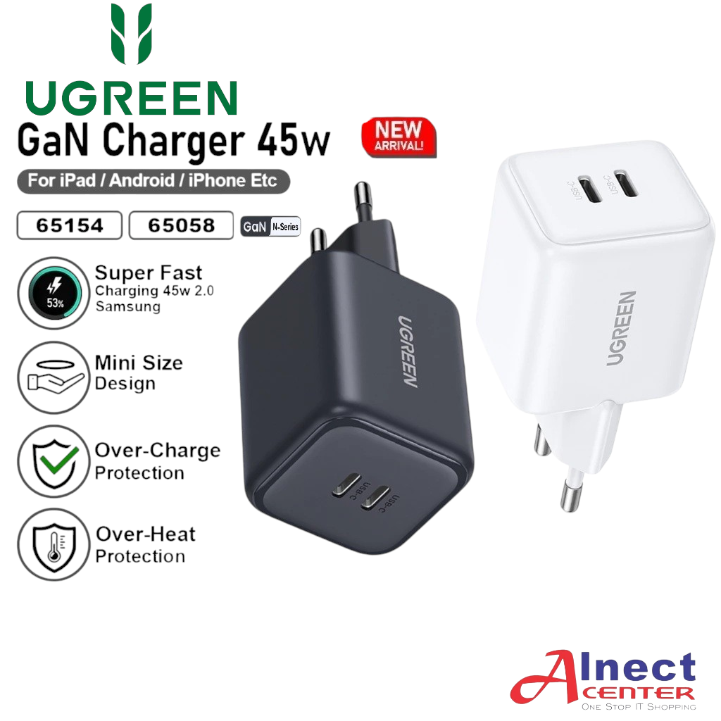 Ugreen 65058 / 65154 Charger 45W Dual Pport USB A USB Type C Fast Charging Feature : - GaN Charger Revolusi teknologi GaN memiliki desain lebih compact, hemat dan lebih sedikit panas meski menghantarkan daya besar - Output Max 45W UGREEN X526 dapat digunakan untuk melakukan pengisian daya cepat dengan output total maksimal 45W (25W + 20W) - Dual Port Dapat digunakan untuk melakukan pengisian daya cepat dua device secara bersamaan Highlight : - Fast Charging - Compact Design - Lightweight - Stable Charging - Anti Overheat - Anti Overvoltage