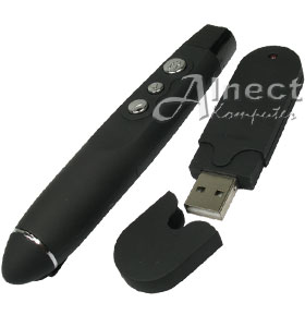 Perangkat remote kontrol berbentuk pena ini digunakan untuk keperluan navigasi layar presentasi jarak jauh tanpa kabel (wireless) seperti kontrol manual slide show dan laser pointer untuk memudahkan pointing ke objek presentasi.