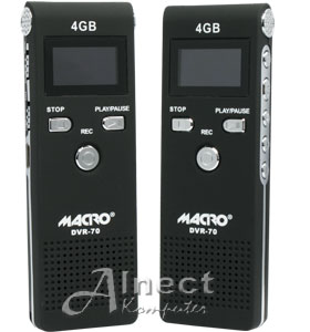 Perekam suara digital keluaran Macro ini dilengkapi fitur unik perekam telepon PSTN (telepon rumah) dan dapat sebagai pemutar musik (MP3). Terintegrasi memori 4GB maka alat ini bukan hanya sebagai alat perekam biasa tetapi sebagai media penyimpan data dan dapat dihubungkan ke komputer atau notebook melalui koneksi USB atau untuk keperluan isi ulang baterainya. Hadir dengan desain simpel, tipis berlapis bahan doff anti-grip yang sangat nyaman digenggaman tangan. Dilengkapi dengan kelengkapan tombol navigasi dan layar LCD yang sangat memudahkan pengoperasiannya serta terintegrasi speaker mini yang dapat digunakkan untuk mendengarkan musik dan hasil rekamannya.