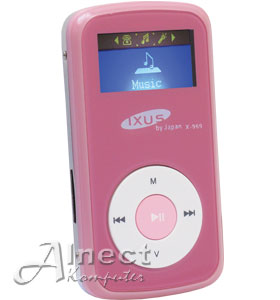 Pemutar MP3 portabel keluaran Ixus ini hadir dalam desain yang unik dan warna yang menarik. Dilengkapi fasilitas radio FM dan perekam suara digital, player ini memiliki layar LCD dual tone dan memori internal berkapsitas hingga 2GB sebagai sarana utama media penyimpanannya. Selain itu player MP3 ini juga dilengkapi slot micro SD untuk tambahan kapasitas memorinya (Micro SD dijual terpisah). Sumber listriknya menggunakan baterai lithium internal yang dapat diisi ulang melalui port USB komputer atau notebook menggunakan kabel yang sudah disediakan.