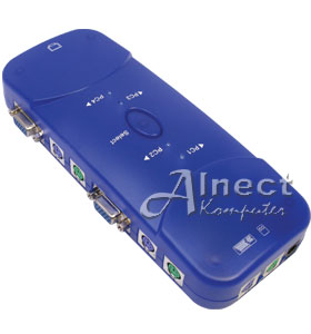 Controls 4 desktop computer (PC) with One PS/2 Keyboard, PS/2 Mouse and VGA Monitor. Support Hot Plug-add or Remove Connected PCs or Maintenance without powering down the KVM Switch or PCs.