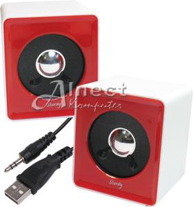 Speaker mini portabel keluaran Sturdy ini hanya ditenagai oleh USB komputer atau notebook dan input suara melalui konektor standar audio 3.5mm stereo yang biasanya ada pada notebook/komputer PC. Hadir dengan suara yang lebih jernih dan bertenaga dengan ukuran yang mini serta portabel mudah dibawa-bawa.
