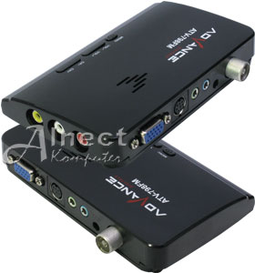 Advance ATV-798FM LED TV Box adalah alat yang dapat mengubah fungsi monitor tabung (CRT) maupun LCD/LED LCD komputer PC menjadi sebuah televisi analog menggunakan antena TV konvensional UHF/VHF (dijual terpisah). TV Tuner ini mendukung resolusi tinggi hingga 1920x1200 dan format layar lebar (widescreen) untuk monitor LCD serta mendukung layar HDTV 1080P. TV Tuner yang sudah dilengkapi modul raido FM tuner ini juga sudah tersedia Video dan Audio input dari konektor tipe RCA yang dapat digunakan untuk input kamera CCTV, VCD/DVD Player, Game Console (PS/PS2) dan lain-lain.