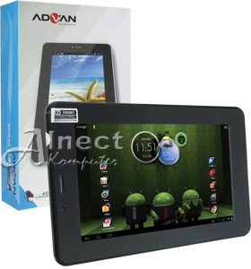 Tablet Android keluaran Advan seri Vandroid ini dilengkapi dengan platform pintar Google Android v4.0.4 Ice Cream Sandwich (ICS) dan dioperasikan dengan fungsi penuh layar sentuh kapasitif berukuran 7 inci (480x800) dan dilengkapi fasilitas panggilan atau menerima telepon (GSM) dan SMS/MMS (Dual SIM Card) terintegrasi. Tablet Android ini berkekuatan prosesor ARM Cortex A9 Dual Core berkecepatan 1.0Ghz dan dilengkapi memori RAM 512MB DDR3 serta media penyimpanan internal berkapasitas besar 4GB serta dukungan untuk penyimpanan data tambahan melalui kartu memori microSD mendukung sampai kapasitas 32GB (micro SD dijual terpisah). Tablet PC Android ini berisi aplikasi umum untuk kebutuhkan hiburan (foto, musik dan video player), TV tuner analog (dapat melihat siaran channel TV) beserta antenanya, FM radio tuner, games dan kebutuhan untuk mengakses internet (browsing, email, chatting). Untuk mengakses ke koneksi internet, tablet PC ini sudah dilengkapi perangkat modul WiFi 802.11b/g/n (WLAN) lengkap dengan fungsi tethering dan modem GSM 2.75G/EDGE serta konektivitas bluetooth terintegrasi. Selain itu, PC tablet ini yang bertenagakan baterai lithium berkapasitas 3000mAh ini sudah terintegrasi dual kamera (depan & belakang) dengan fungsi foto dan perekam video serta fasilitas standar dari Google Android seperti Gmail, Maps, Android Market (Play Store), Google Search, YouTube, Google Talk dan lain sebagainya. Diberikan kartu perdana internet dari XL dengan bonus internet sampai dengan 1 (satu) bulan dalam tiap paket penjualannya.