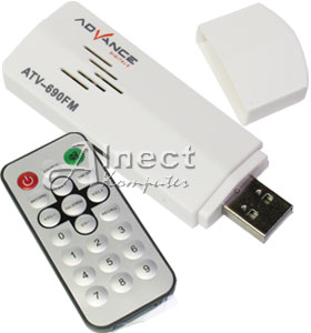 TV Tuner eksternal keluaran Advance Digitals yang bentuknya menyerupai sebuah USB Flash Disk ini sangat praktis dan mudah untuk dibawa-bawa bersama notebook kesayangan. Suatu alat yang dapat menayangkan siaran TV lokal (UHF/VHF) atau merekamnya dimana saja dan kapan saja melalui komputer PC maupun Notebook. TV tuner portabel ini juga sudah dilengkapi fungsi radio FM dan IR remote control untuk memudahkan pengoperasiannya. Disediakan antena TV portabel dan terintegrasi kanal masukan audio dan video dari media VCD/DVD Player/Play Station dan lain-lain (kabel A/V RCA disediakan dalam tiap paket penjualannya.