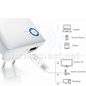 TP-LINK TL-WA850RE 300Mbps Wireless N Range Extender dirancang untuk memperluas cakupan dan meningkatkan kekuatan sinyal dari jaringan nirkabel yang ada untuk menghilangkan "zona mati" dengan kecepatan nirkabel N 300Mbps. Disediakan juga tombol "Range Extender" dengan ukuran miniatur dan dirancang "wall-mounting" sehingga fungsi untuk memperluas jangkauan nirkabel jadi lebih mudah. Terintegrasi Port Ethernet LAN (RJ45) membuat TL-WA850RE ini sebagai adapter nirkabel untuk merubah perangkat kabel menjadi perangkat nirkabel.