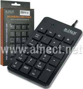 Keyboard tambahan khusus keluaran M-Tech ini untuk memudahkan akses cepat ke tombol numerik/angka dan untuk lebih menghemat tempat. Hadir dengan bentuk tombol mirip keluaran Apple MacBook memberikan kenyamanan saat mengetik dan pelengkap sempurna untuk notebook saat pengguna bekerja pada layar spreadsheet, akuntansi atau aplikasi keuangan. Cukup dengan menancapkan numerik pad ini ke notebook atau PC melalui koneksi kabel dengan port USB, pengguna siap untuk menghitung tanpa memerlukan driver khusus.