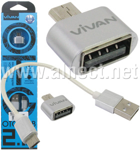 Kabel keluaran Vivan ini digunakan untuk menghubungkan perangkat smartphone (blackberry and android phone/PC tablets) maupun MP3/MP4 player portabel ke komputer atau notebook melalui koneksi port USB. Kabel yang hadir dengan pilihan warna silver dan gold ini biasanya digunakan untuk keperluan transfer data maupun keperluan isi ulang baterai dengan kecepatan tinggi dari port USB komputer atau power bank portabel yang mendukung konektor standard Micro USB segala versi. Disediakan konektor USB OTG Micro pada setiap paket penjualannya.